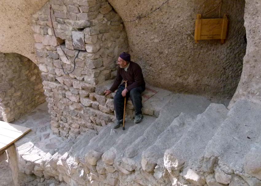 In Abyaneh angekommen, machen wir eine Besichtigungstour in der Abendsonne durch den Ort, der sich mit seinen einheitlich roten Lehmhäusern an den Berghang schmiegt. Die touristische Hauptgasse ist sehr schön renoviert, daneben sieht es meist eher etwas zerfallen aus. Wir übernachten auf dem Dorfparkplatz. |