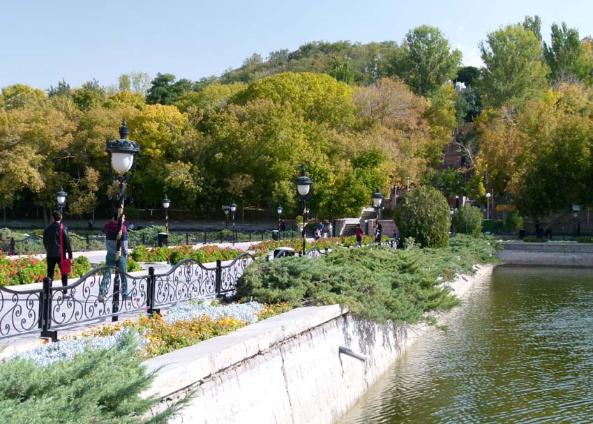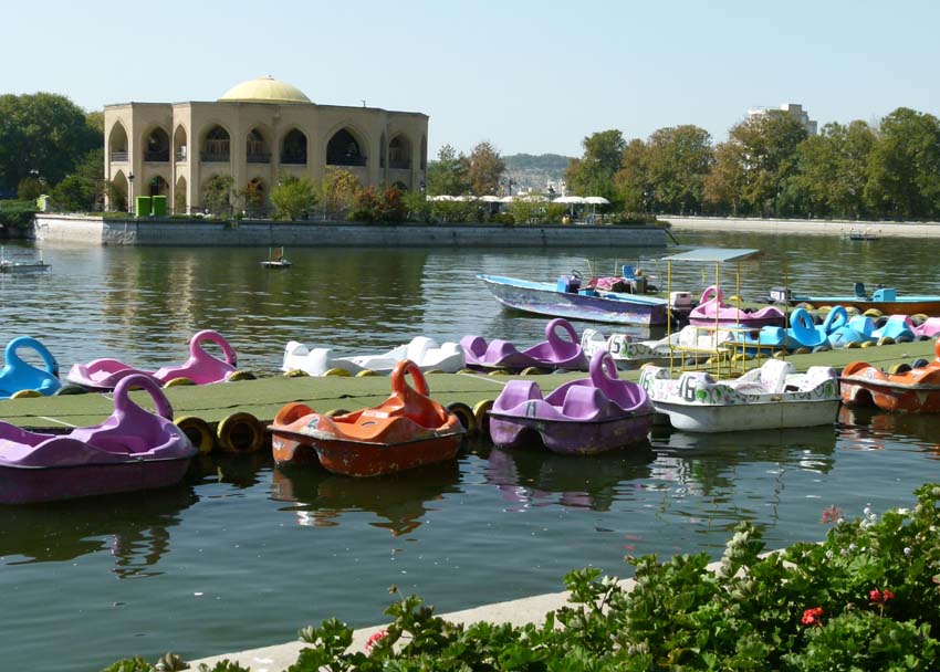 Im Park um den See herum spazieren viele Menschen und treiben auch Sport auf die iranisch zurückhaltende Weise.