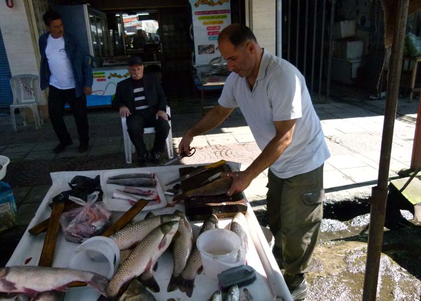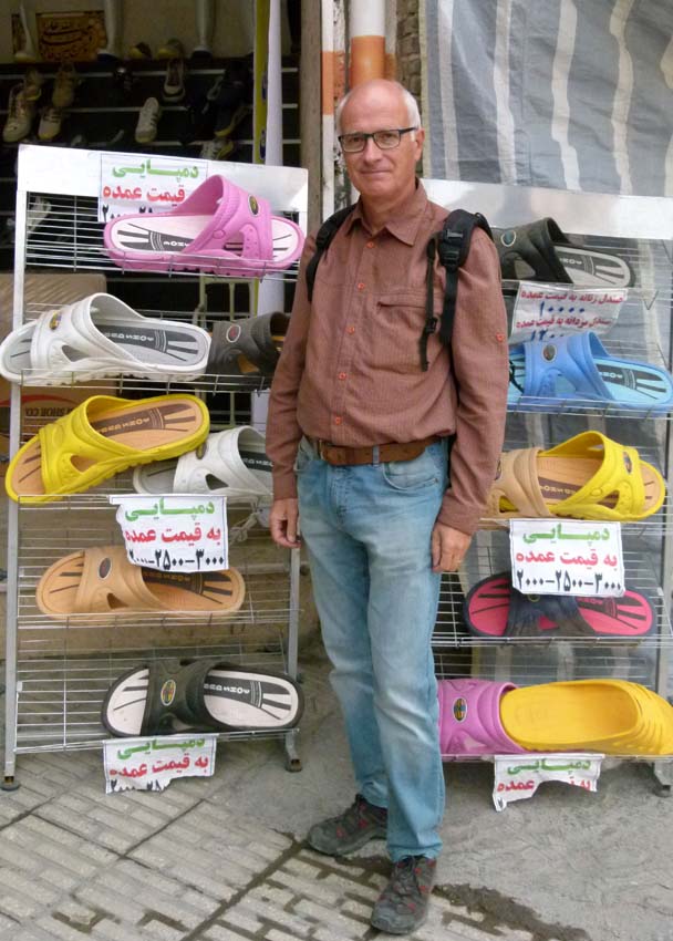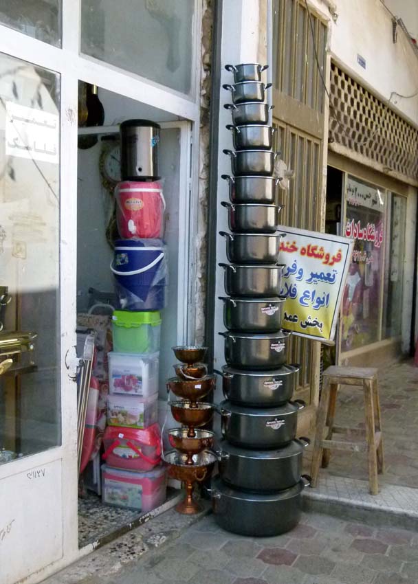 | In Jolfa wollen wir eine SIM Karte kaufen. Gleich am Ortseingang hat es einen Bazar. Jolfa ist eine Zollfreizone und deshalb werden viele verschieden Waren günstiger verkauft. Uns fällt auf, dass viele Putzmittel und Kleider verkauft werden. Da wir keinen entsprechenden Shop für SIM Karten finden, fragen wir einen jungen Mann, wo es diese gibt. Weil er nicht so gut Englisch spricht, holt er seinen Englisch sprechenden Freund. Wir erfahren, dass es die SIM im Stadtzentrum gibt und wir werden gleich mit dem Auto dorthin gefahren. Zuvor bekommen wir noch eine Einladung zum Abendessen. Etwas verunsichert ob wir sie annehmen sollen, sagen wir dann doch zu. Der junge Hassan fährt mit uns ins Zentrum von einem Shop zum nächsten, aber alle haben schon geschlossen. Also geht es erst einmal ohne SIM zurück. Hassan und Farzad sind beide Ladenbesitzer und arbeiten noch bis 18 Uhr. |