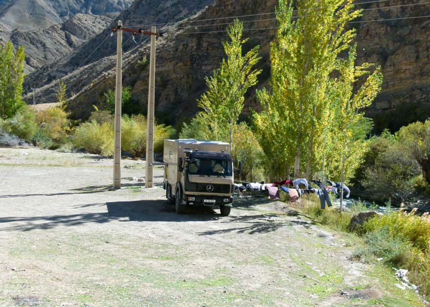 Eigentlich müssten wir wieder mal unsere Wäsche waschen, doch sind wir etwas verunsichert, da wir noch keine zum Trocknen aufgehängte Wäsche im Iran gesehen haben. Wir verschieben das auf den nächsten Tag. |