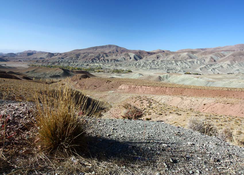 Es hat rötlich bunte Bergformationen, die wir auf der sehr guten Strasse auch während der Fahrt bewundern können.