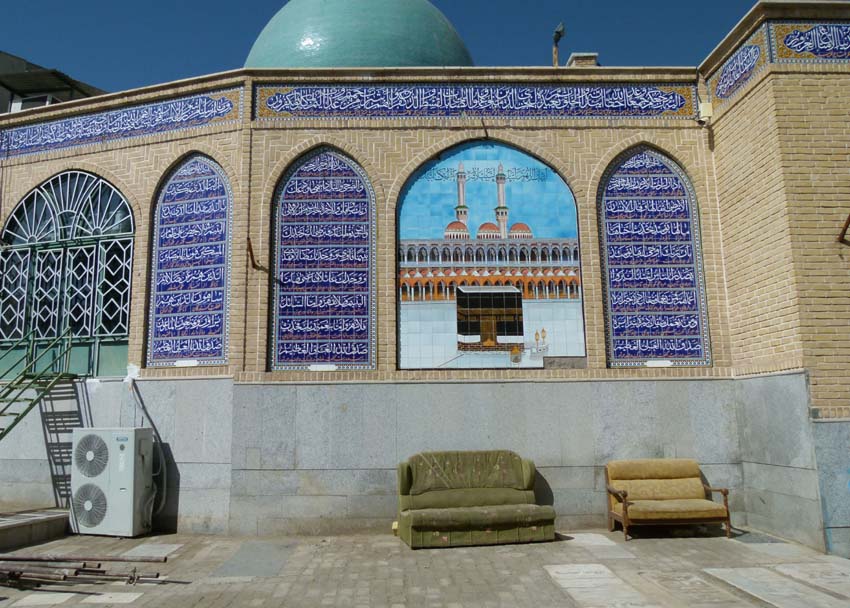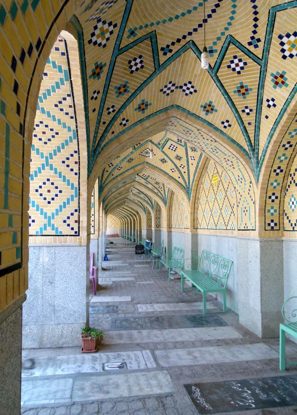 Als die Läden auf dem Markt schliessen, besichtigen wir eine Mosche,e die auf dem Weg zum Tekiyeh Maoven ol-Molk.