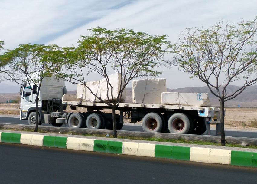 Bei Delijan hat es viele Steinbrüche und es werden grosse Brocken transportiert und zu Platten geschnitten.