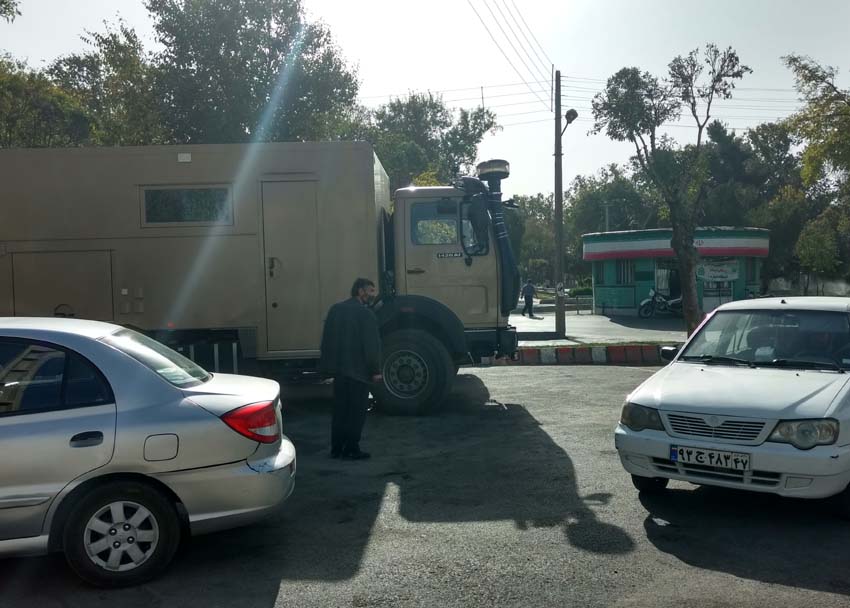 | Man hört immer wieder, das Visum könne in jeder grösseren Stadt einfach verlängert werden: zweiter Anlauf. In Kermanshah haben wir zum Glück einen GPS Punkt für die Visumstelle (34.325732, 47.08017) und fahren gleich dort hin. Wir fragen ob wir hier richtig sind. Unsere Pässe werden entgegengenommen und kontrolliert. Auch hier will man unser Visum nicht verlängern, weil es (jetzt) noch 4 Tage gültig ist, wir sollen nach Khorramabad oder am Samstag wieder hierher kommen. Zuerst überlegen wir ob wir am Freitag weiterfahren, entschliessen uns dann aber hier zu bleiben. Ein netter Iraner zeigt uns einen bewachten und kostenpflichtigen Parkplatz gleich neben dem Bazar. Die Einfahrt ist wegen einem darüber hängenden Stromkabel etwas zu niedrig, aber mit vereinten Kräften wird es angehoben und wir können einfahren. Grosse Begeisterung beim Platzchef, wir müssen nichts bezahlen, müssen aber wie so oft für Selfies in ein Smartphone lächeln. |