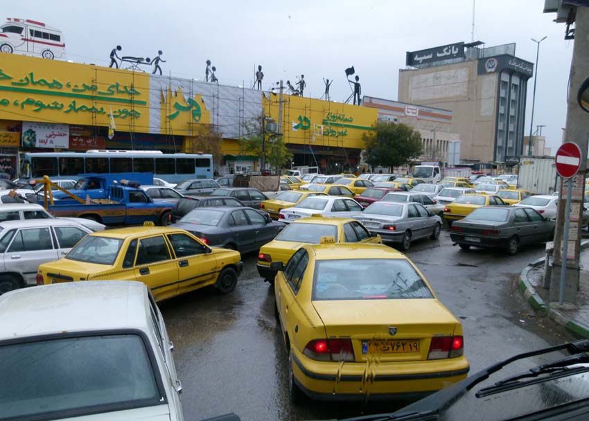 | Die Fahrt nach Tabriz ist landschaftlich abwechslungsreich mit bunten Felsen. Die Strassen sind sehr gut und bis vor die Stadt ist relativ wenig Verkehr. Aber dafür ist dann in der Stadt wieder einiges los, die sonst so freundlichen und liebenswürdigen Iraner werden sobald sie ein Lenkrad in der Hand haben zum Monster. Da wird gerast, geschnitten, gedrängelt und keiner kennt Verkehrsregeln. Wir kommen ziemlich k.o. auf dem Campingplatz beim Mozafer Park an und verbringen dort eine ruhige Nacht. |