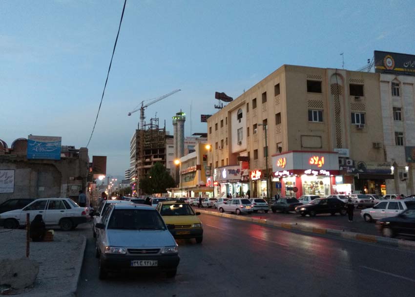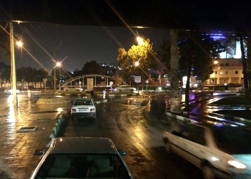 Wir erreichen Khorramabad relativ spät und bei dem düsteren Wetter wird es noch früher dunkel. Bei der Stadteinfahrt hat es kaum Verkehr, doch im Zentrum herrscht ein ziemliches Verkehrschaos. Da es schon dunkel ist und zudem noch regnet, ist auf der Seite und hinter dem eigenen Fahrzeug gar nichts mehr zu erkennen. |