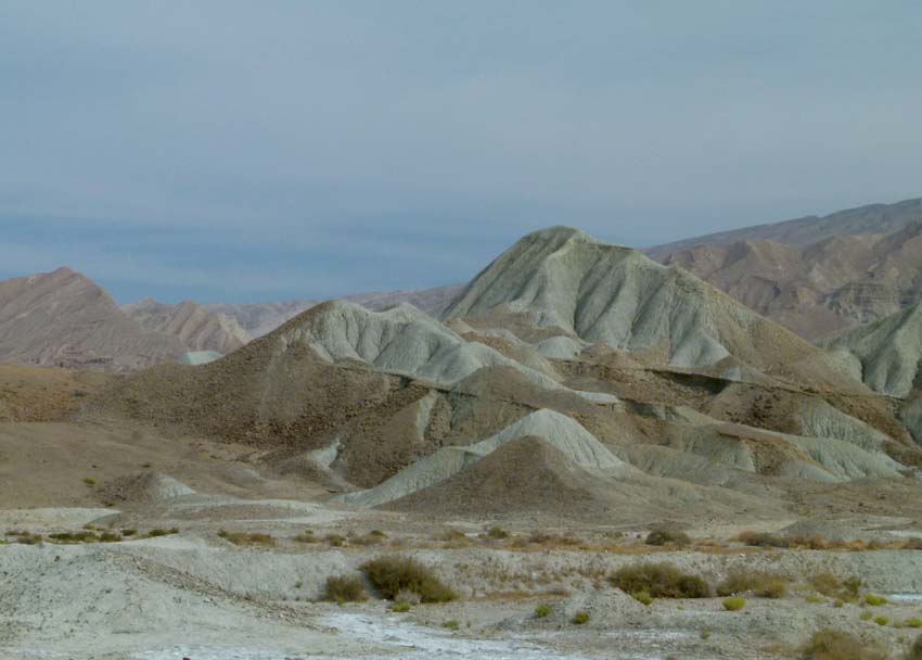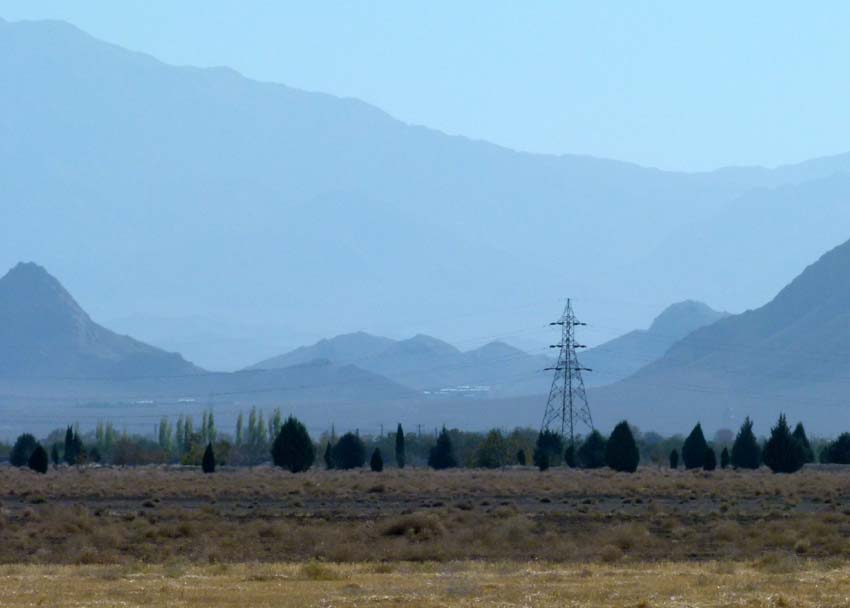 Die Sicht ist vom aufgewirbelten Sand immer noch diesig, dass die schönen Berge in der Ferne kaum erkennbar sind.