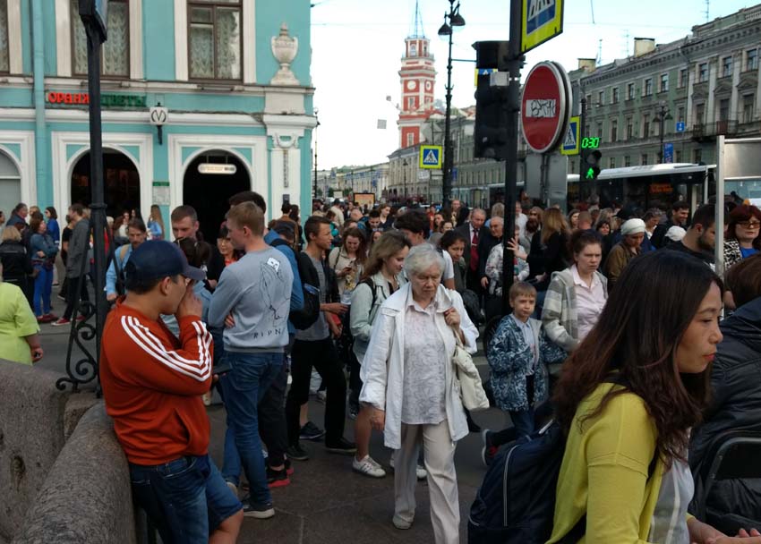 Die Metrostation ist in wenigen Minuten zu Fuss erreichbar und in 15 Minuten ist man mit der pausenlos tief unter dem Boden fahrenden Metro im Zentrum. Auf dem Weg zur Metro kommen wir an der Post vorbei, wo wir Briefmarken kaufen, da sich meine Tante eine traditionelle Postkarte aus St. Petersburg gewünscht hat. Briefmarken gibt es nur auf der Post und diese zu kaufen ist schon fast ein Tage füllendes Programm. |