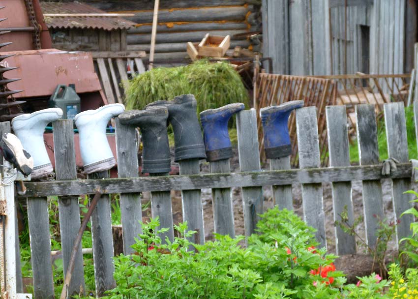 Es ist ein regnerischer Nachmittag. Die Einheimischen sind für dieses Wetter bestens gekleidet mit Gummistiefeln und Regen-Pelerinen.