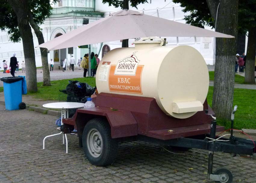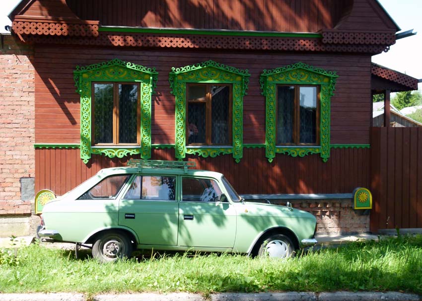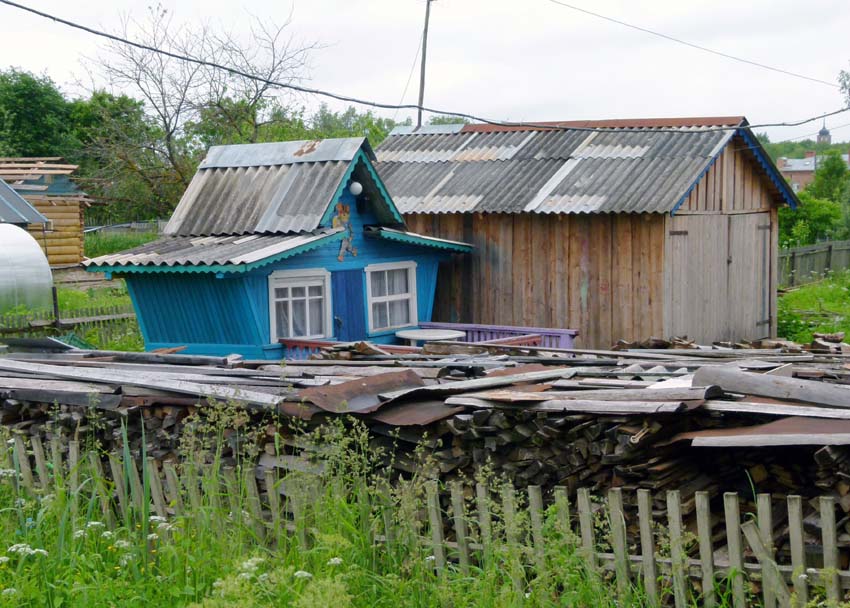 Bevor wir Suzdal verlassen, werden wir noch von einer Journalistin interviewt und fotografiert. Sie hat für eine Zeitung aus Vladimir das Übliche woher, wohin, warum gefragt. Wahrscheinlich lächeln wir jetzt auf einem Foto in der Zeitung zwischen unseren gewaschenen Unterhosen auf der Leine hervor. Wir müssen die Überflutung mit Denkmälern erst einmal verdauen. Auch wenn jedes Einzelne davon sehr sehenswert und wunderschön ist, wird es halt mit der Zeit doch zu viel. |