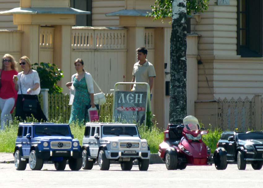 Später kommt Michael und zeigt uns die Hallen, die den Hof umschliessen. Hier war einst das erste mit Kohle und Dampf betriebene Elektrizitätswerk Russlands. Die Hallen werden jetzt renoviert und es entsteht ein Theatersaal. Ausserdem ist ein Institut für angehende Juristen angeschlossen. Wir bekommen Michaels Passwort für das WiFi und sind rundum versorgt. Etwas später kommt noch der Besitzer des anderen Wohnmobils dazu und es entsteht ein interessanter Gedankenaustausch, denn beide sprechen gut Englisch. Wir dürfen bleiben so lange wir wollen. Am nächsten Tag wird wieder mal Wäsche waschen. Der Pförtner schleppt Garderobenständer ins Schulzimmer des Instituts, zwischen die wir die Wäscheleinen spannen. Es hat sich Einiges angesammelt und 5 Maschinen Wäsche hängen im Schulzimmer zum Trocknen, während wir nochmals den grossen Park beim Katharinen Palast geniessen. Heute ist Samstag und im Park treffen wir etwa 10 Hochzeiten, die hier zum Fotoshooting sind. Zurück beim Auto kommt Michael und sagt, er habe die Sauna für uns eingeheizt. Wir geniessen die Sauna, die bei den noch immer kühlen Temperaturen gut tut. Am Sonntag Vormittag besichtigen wir eine Kirche im Ort, wo gerade eine orthodoxe Messe stattfindet und schlendern danach über den Markt. Erstaunlich ist, dass hier sehr viel Einheimische einkaufen, ganz im Gegensatz zu den Märkten die wir in St. Petersburg gesehen haben. Wir finden zufällig eine Bäckerei, die fantastisch frisches knuspriges Brot hat. Und auch Bananen für das Frühstücksmüesli gibt es bei einem Englisch sprechenden Händler. Unsere zwei neuen Camping-Freunde kommen noch vorbei um sich zu verabschieden. Sie wollen am Nachmittag mit ihren Wohnmobilen für ein paar Tage nach Finnland. Michael überreicht uns beim Verabschieden noch einen Zettel mit Koordinaten für weitere Stellplätze in Städten, die auf unserer Route liegen (Moskau, Wolgograd, Astrachan, Tiflis). Wir sind sprachlos über so viel Gastfreundschaft. Vielen Dank! Unterwegs steht am Strassenrand ein einsamer Polizist und winkt mit seinem Stab relativ unauffällig. Etwa verzögert halten wir am Strassenrand an und warten ab, was nun geschieht. Er kommt zu uns und verlangt die Papiere. Mercedes sagt er und als er den Führerausweis gesehen hat, ist er voll zufrieden und wir können weiter fahren. |