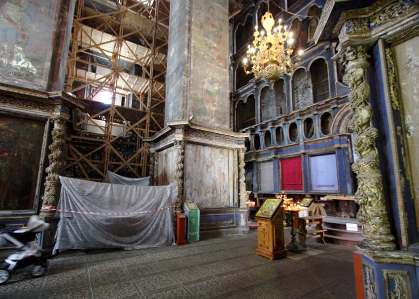 Daneben steht sehr unscheinbar die älteste erhaltene Kirche Russlands. Das Innere dieser Kirche aber ist eher mager.