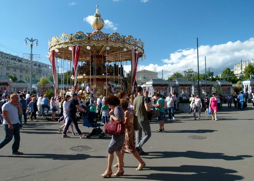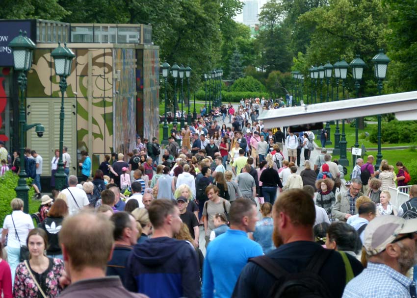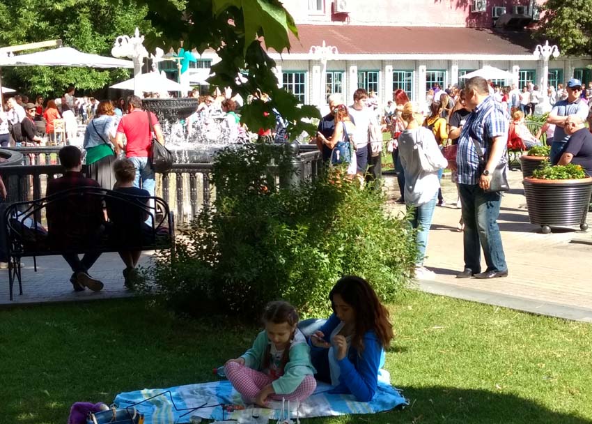 Wir beobachten die russischen Familien, die ihre Decken auf dem Rasen ausbreiten und Picnickörbe auspacken.