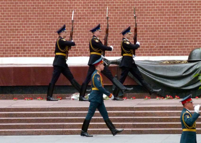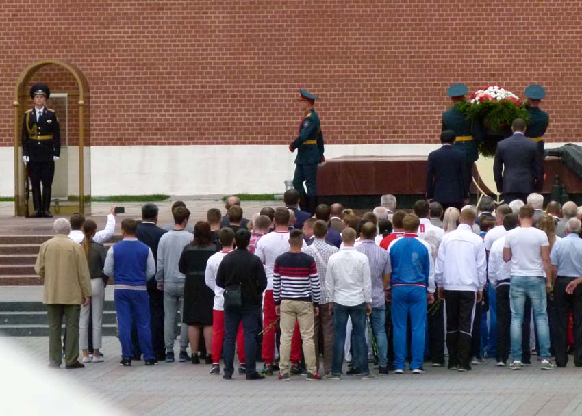 Durch eine Sportveranstaltung, welche fast den ganzen Roten Platz belegt, wird der Platz noch zusätzlich eingeengt. Beim Eintritt in den Kreml hat es Kontrollen wie am Flughafen. Taschen und Menschen werden gescannt. Unser Schweizer Taschenmesser wird bemängelt und wir müssen es schweren Herzens liegen lassen und haben es auch nicht zurückbekommen. |